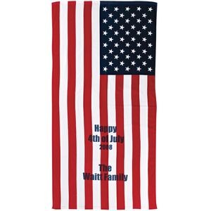 Also a popular item for those spending Independence Day at the lake or beach is this American flag beach towel. The fiber reactive printing provides vibrantly finished colors and crystal clear details. Prices start at $19 ea. for 36.