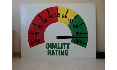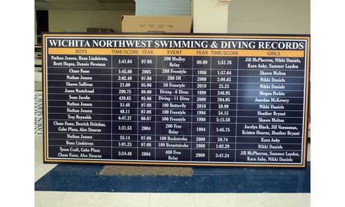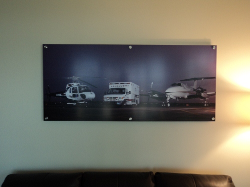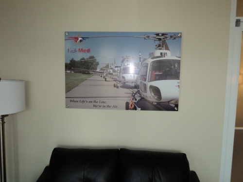 The remarkable wide format HP allows Signs and Design to print directly on virtually any rigid or flexible material with good ink adhesion — we like to say we can print on just about anything, as long as it’s not currently in motion. We’ve even run a standard-sized wooden door (sans hardware) through this printer with stellar results! Printed exterior signage achieves display permanence of approximately 2 years unlaminated and we also have a brand new in-house wide format laminator that can extend durability.